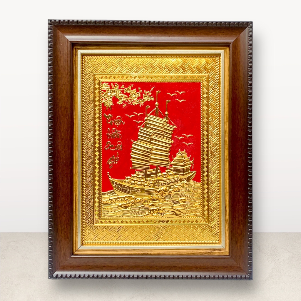 Tranh đồng thuận buồm xuôi gió mạ vàng 24k, kích thước 28cm x 34cm