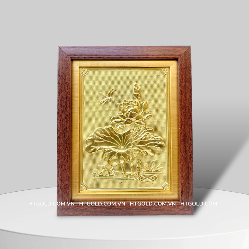 Bức tranh Hoa sen bằng đồng, kích thước 20cm x 25cm của HTgold với những đường nét rất tinh xảo và độc đáo được chế tác từ nguyên liệu đồng vàng nguyên tấm. Sự thanh tao, tinh khiết của hoa sen kết hợp với kim loại quý càng nâng tầm giá trị của món quà tặng cũng như tấm lòng của người tặng đối với người nhận.